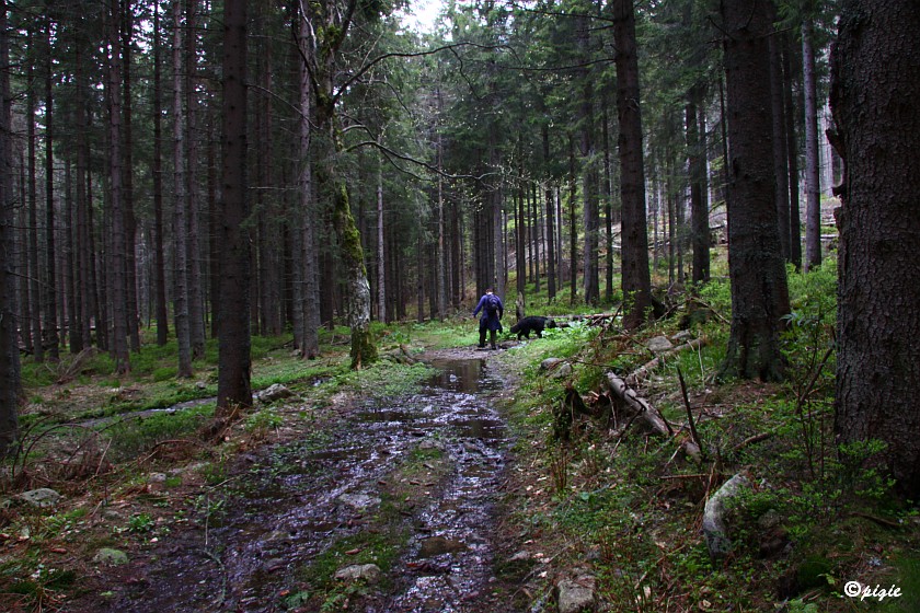 Nevidno, ale cestou dolu nám poriadne spŕchlo, až som bol úplne mokrý