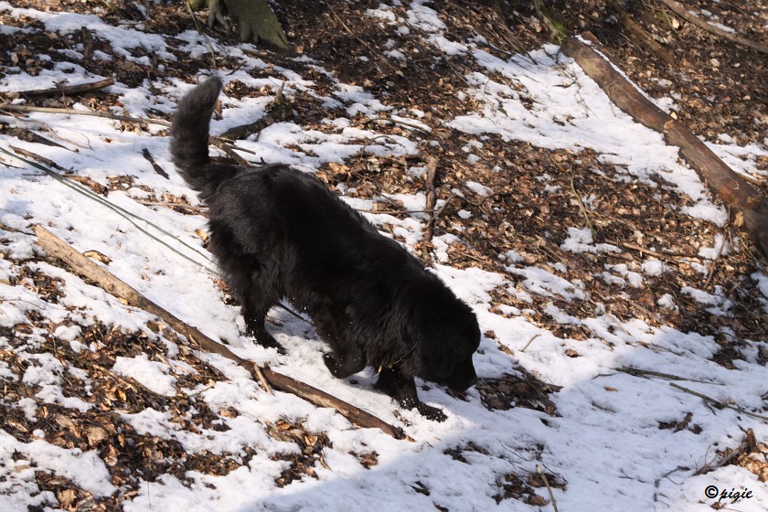 Učím Sany ako treba správne čakať, ešte to nevie, kedže je za stromom, nemá výhľad na tú zberbu dole